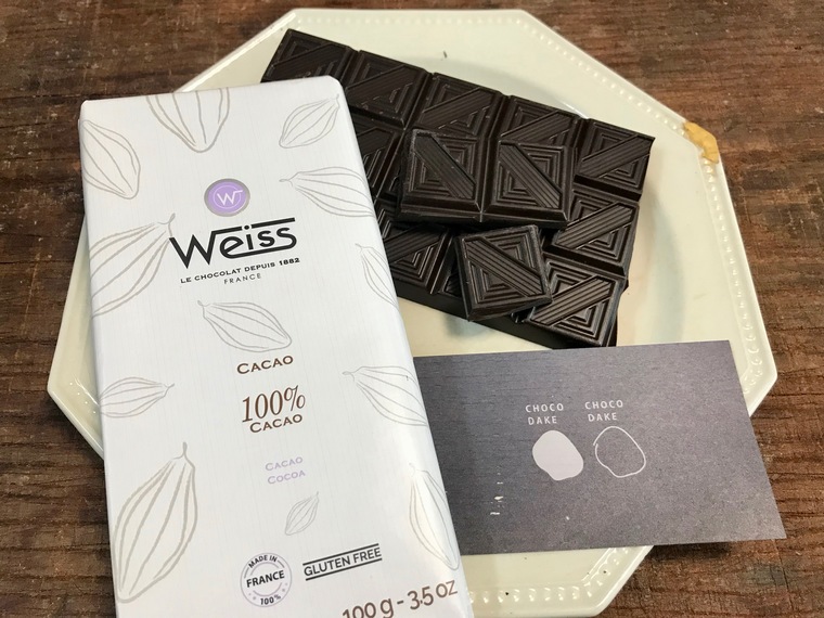おみやげに、ヴェイス社のカカオ100%のタブレットを購入しました。18ブロックなのでひとかけら約67円。