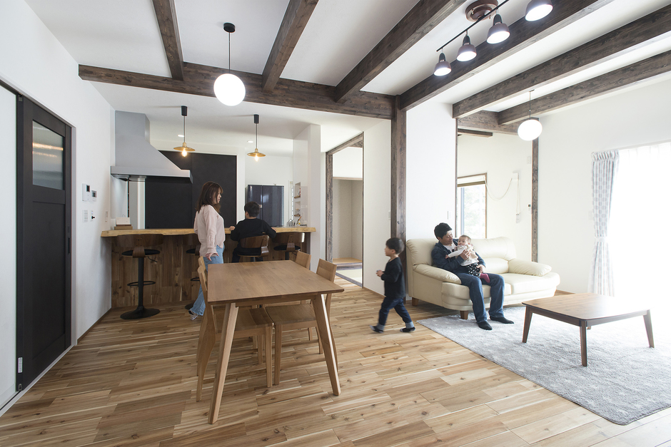 陽光と天然木に包まれたお家で家族時間や趣味をエンジョイ