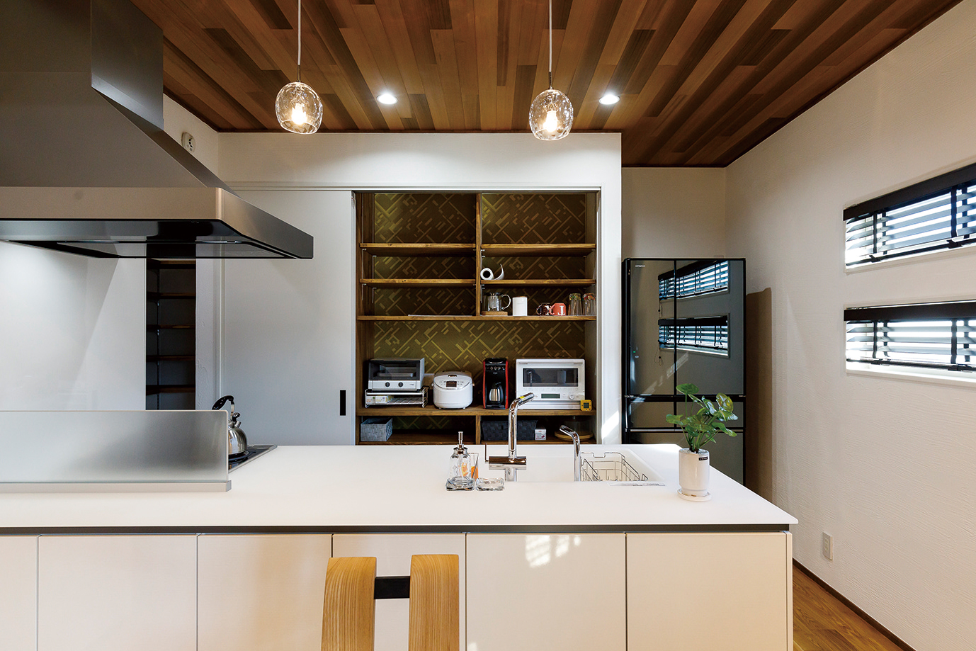 標準仕様のパントリーは造作なので、収納物に応じた配置が可能。家事効率もアップします。