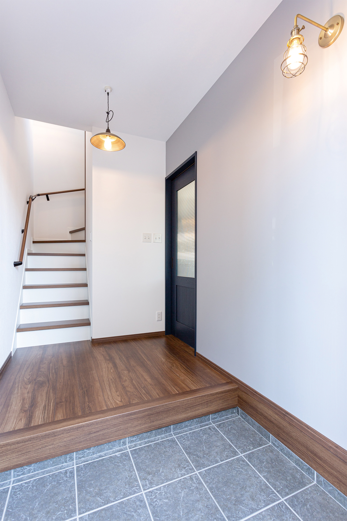 オシャレな照明が映える玄関。