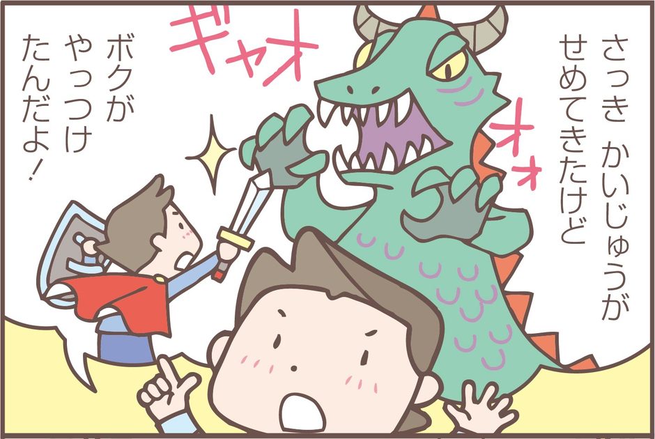 ここで叱ってしまうと、空想することを叱ることになり、子どもの想像力は伸びていきません。 自分が想像したことを言葉で表現できるのは成長のあかしなので、むしろ喜びましょう。