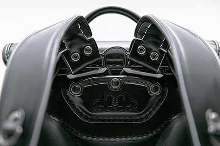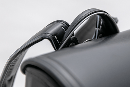 ランドセルが最も壊れやすいとされる教科書取り出し口に、形状補正樹脂と中央部に鉄芯を内蔵し、型崩れや折れからランドセルを守り、形状を維持して変形を防ぎます。