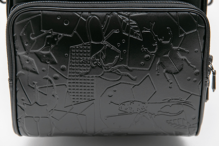 前ポケットには、かぶせ裏と同じ迷彩模様がエンボス加工されています。