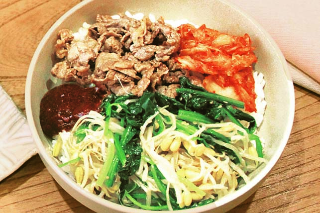ホウレンソウのビビンバ風丼&ホウレンソウのチヂミ