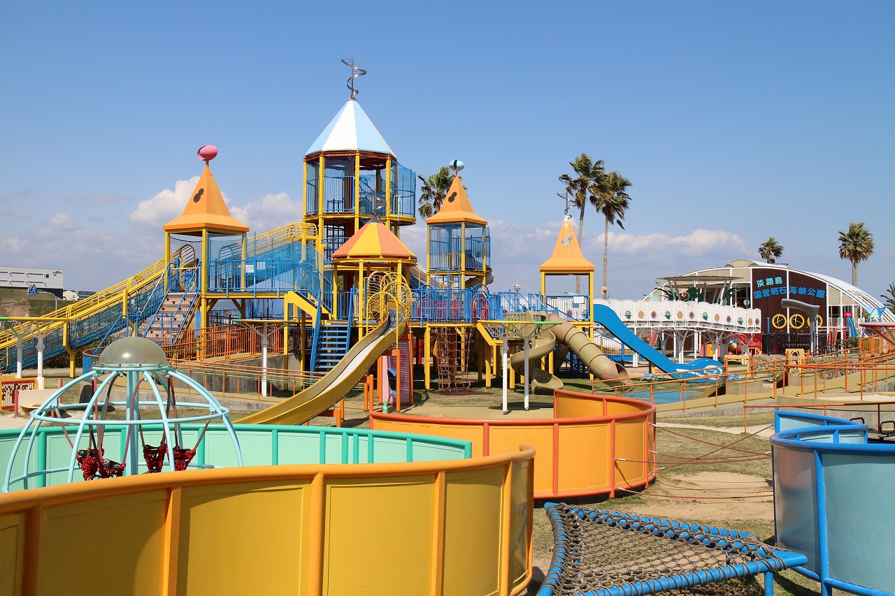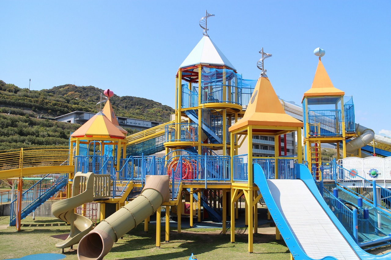「淡路島国営明石海峡公園」の大型複合遊具「夢っこランド」。