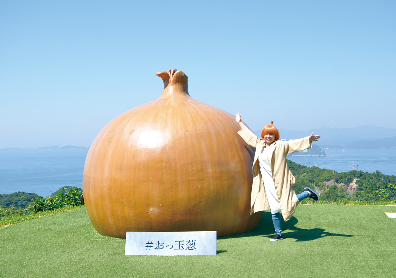 徳島を眺めることができる場所にある「おっ玉葱」前での撮影はぜひ!