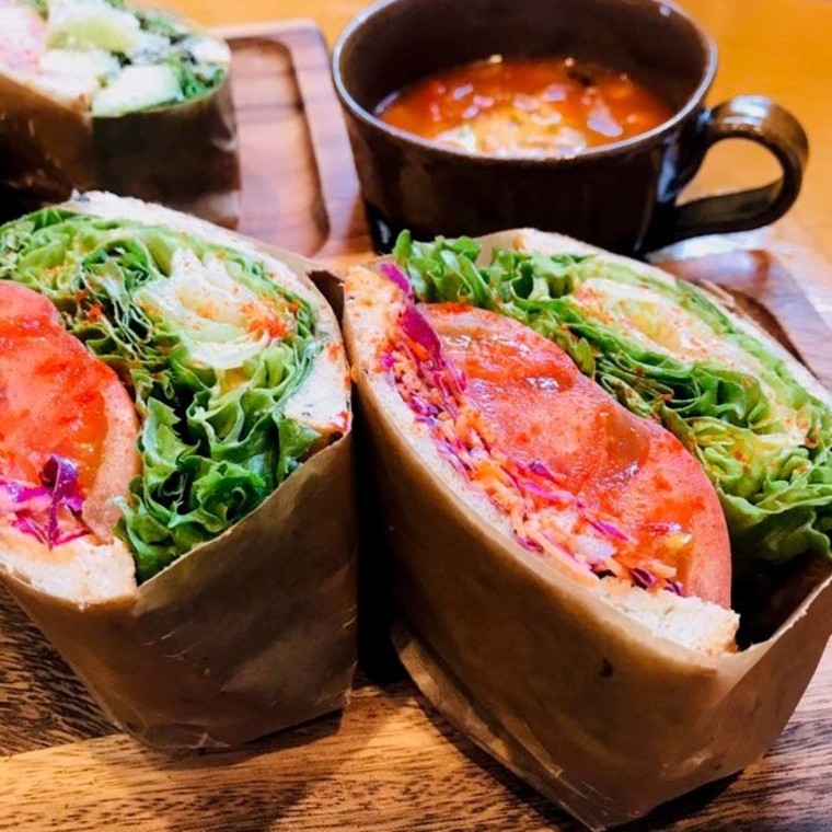 鮮やかな断面がたまらないサンドイッチは「ダイニング バスストップ」の定番人気メニュー!