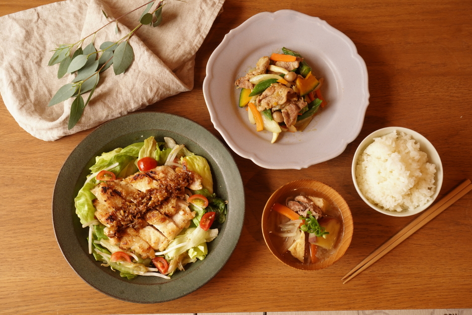 「子どもたちがモリモリ食べそう」「肉と野菜がボリューミー」「彩り豊か」の3つを意識して選びました。同時調理、がんばるぞ!