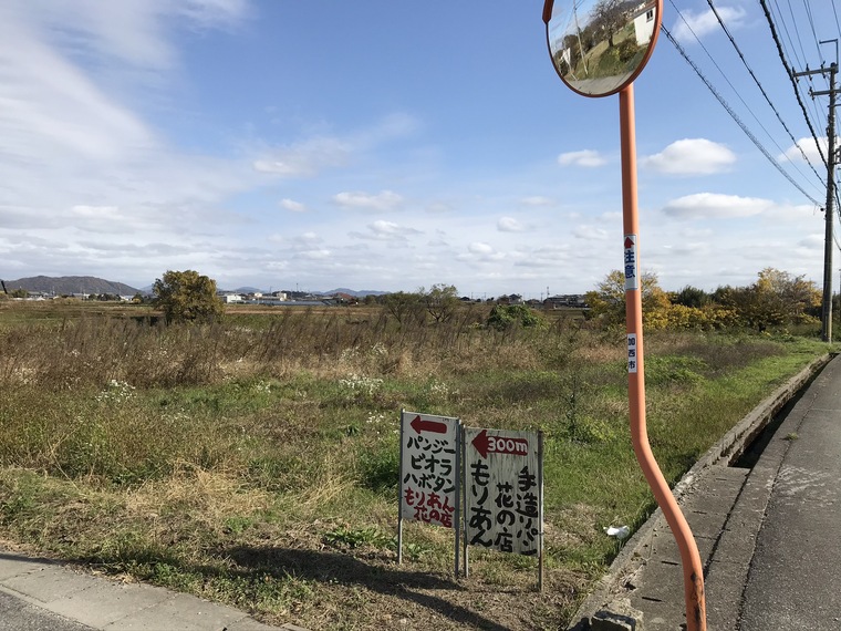 カーブミラーの下に案内があります