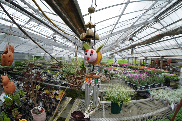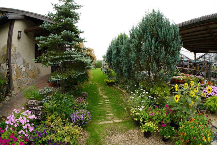 お店の入口前には、お花がいっぱい!