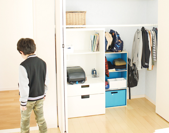 子ども部屋のクローゼットは、備え付けのハンガーラックでは、子どもには高すぎて使いづらいことも。つっぱり棒をハンガーラックとして使えば、成長に合わせて高さが調節できて、おかたづけの習慣も身につきやすくなりますよ。