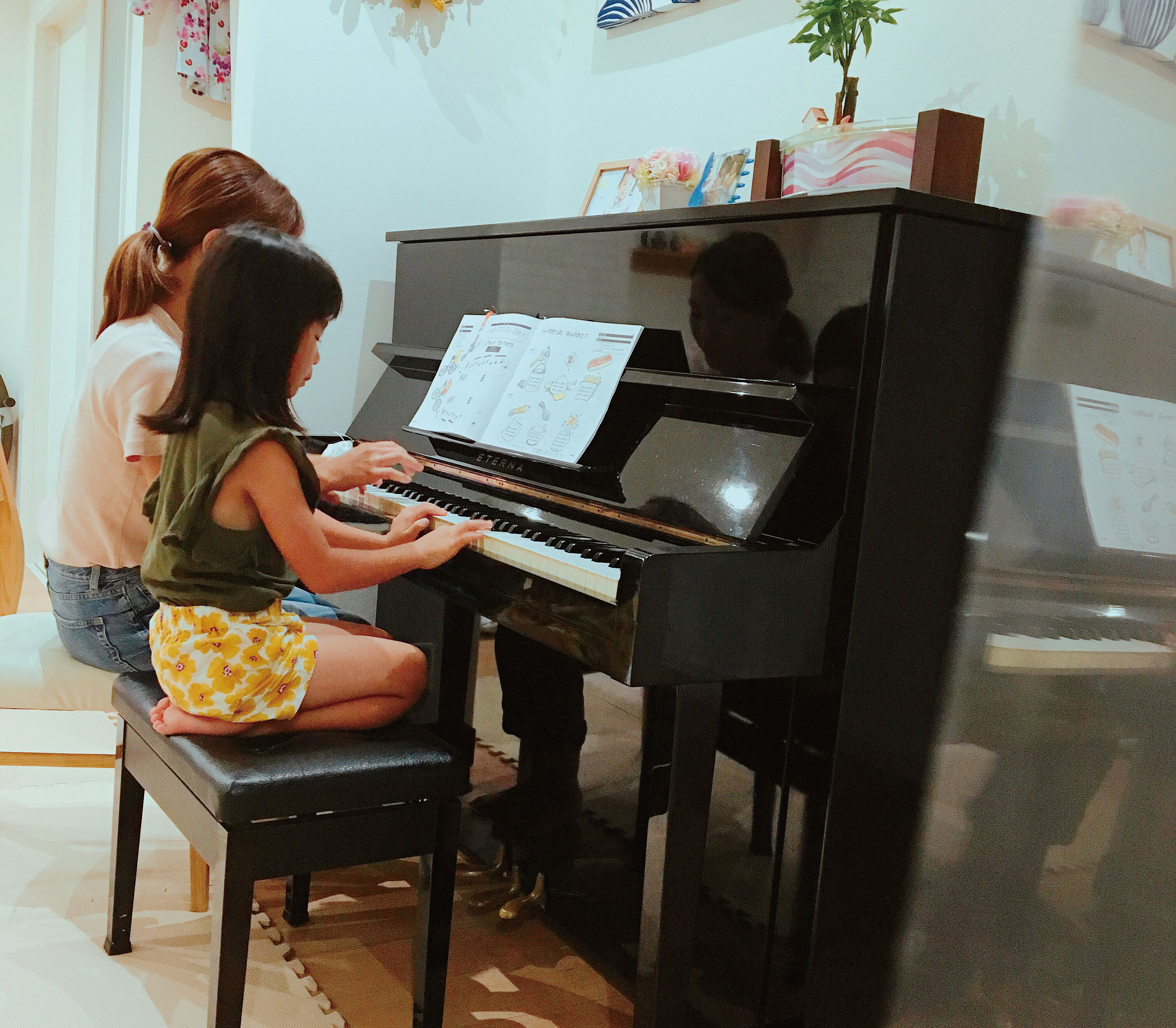 ピアノを用いてリトミックや リズム遊びをよくしています。 息子を主人に任せられる日は、 母娘連弾で楽しんでいます。