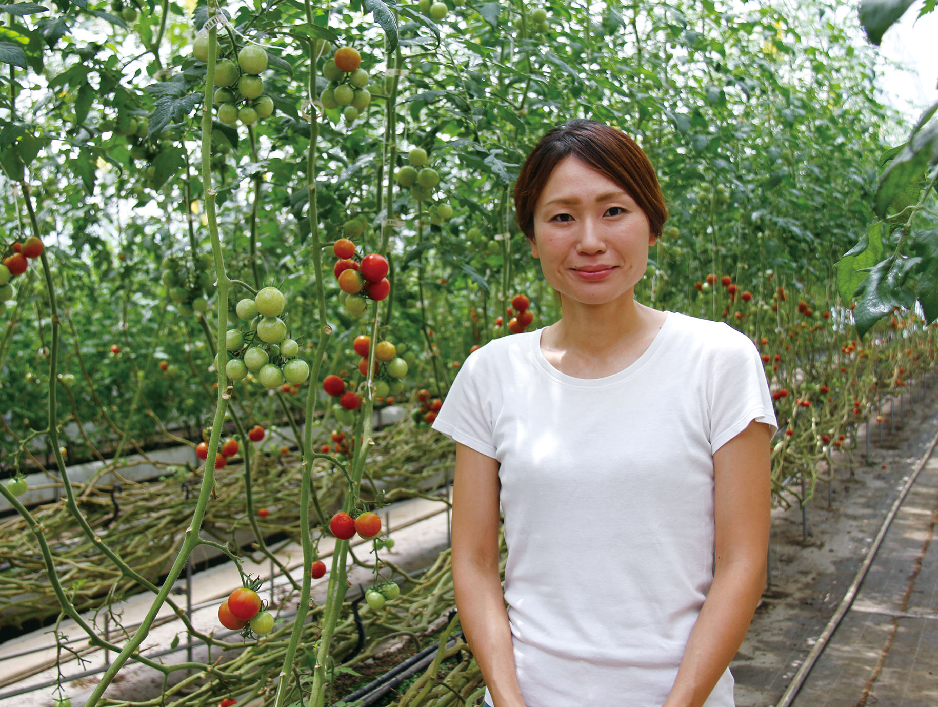 Profile/姫路市在住。ご主人と5歳の女の子、2歳の男の子と4人暮らし。幼稚園教諭として働いたのち結婚を機に退職。長女出産後は子育てに専念する。2015年秋に「八百ちゃんトマト」を栽培・販売する「株式会社みつヴィレッジ」で仕事を開始。野菜の収穫や直売所での販売に携わる。