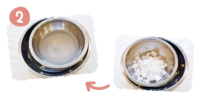 大ボウルに熱湯を張って、ロウを湯せんにして溶かす。