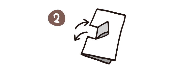 半分に折って手でおさえ、のりづけ部分を固定する。