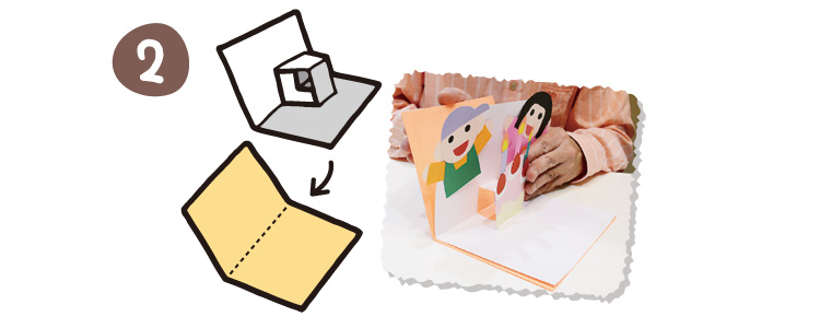 カバー用の画用紙にとびだすカードを重ね合わせる。