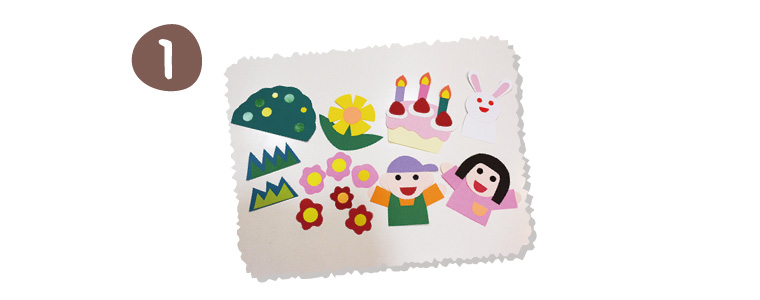 色紙の工作、お絵かきを切り抜いたもの、思い出の写真でもOK。