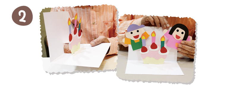 カードの立ち上がりに、とびだすパーツを貼りつける。