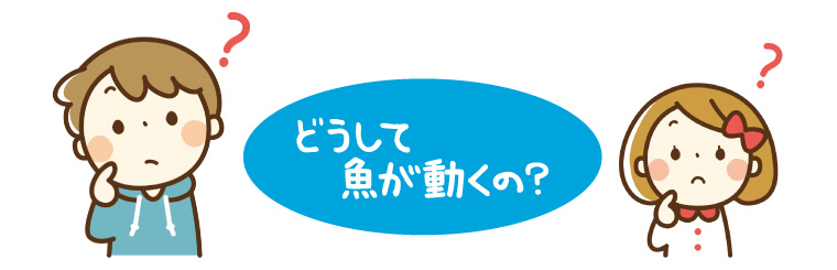 手を放すと、魚の中の空気の体積がもどって浮きます。