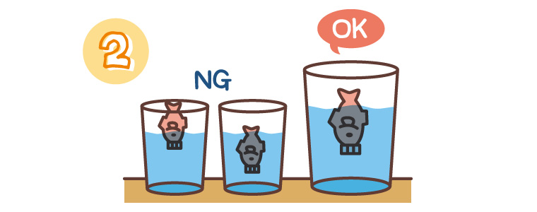 浮きすぎる場合は、魚のお腹を押して水を少し入れ、