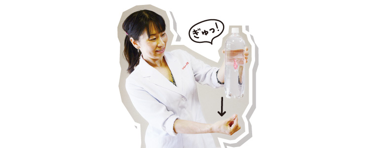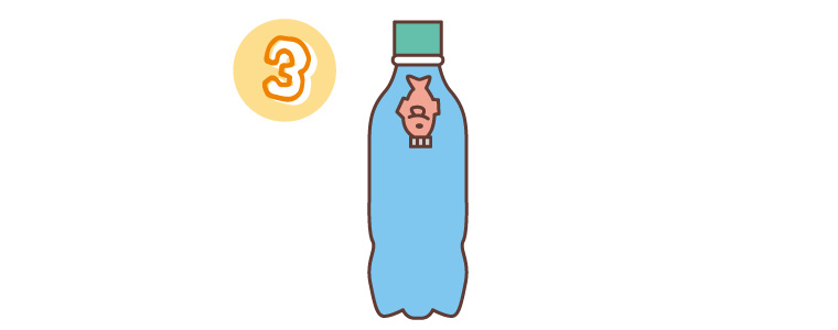 ペットボトルを手のひらで押すと、魚が下に潜っていきます。