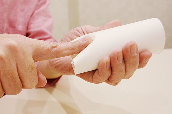 はしっこに人さし指の第一関節まで指をあてて、おしてね。