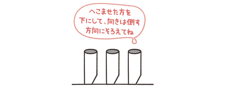 ②芯が倒れやすいように、一部へこませる。