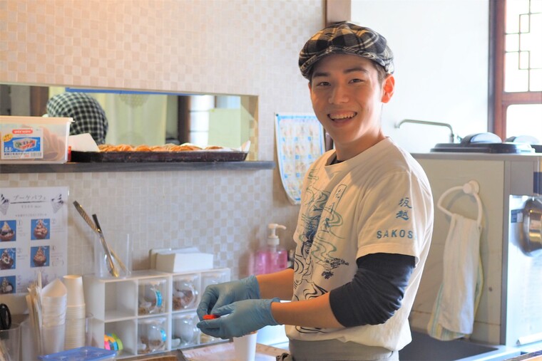 坂利太のソフトクリームは赤穂の牧場から仕入れた質のいい牛乳と希少糖を使っています。