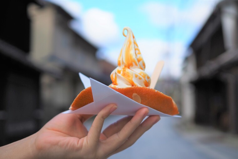 赤穂名産の牡蠣をモチーフにしためずらしいソフトクリームなんですよ。
