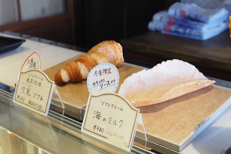 ソフトクリームは『生乳(せいにゅう)ソフト』と、冬季限定『海のミルク』の2種類。各518円
