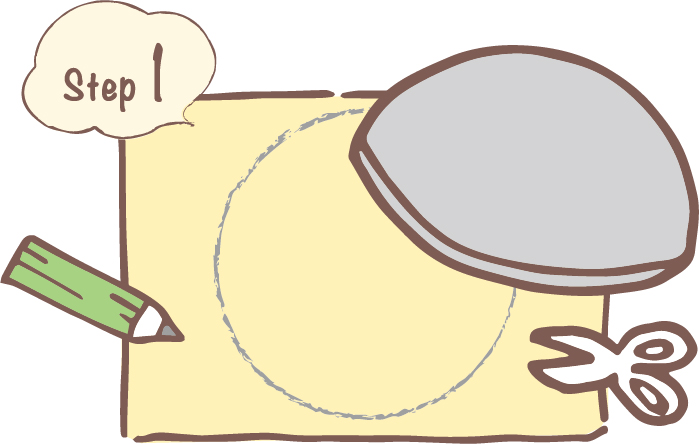 革を広げて、上にボウルを伏せて置く。ボウルの縁に沿って鉛筆で革に線を引き、線の通りにキッチンバサミで丸く切り取る。