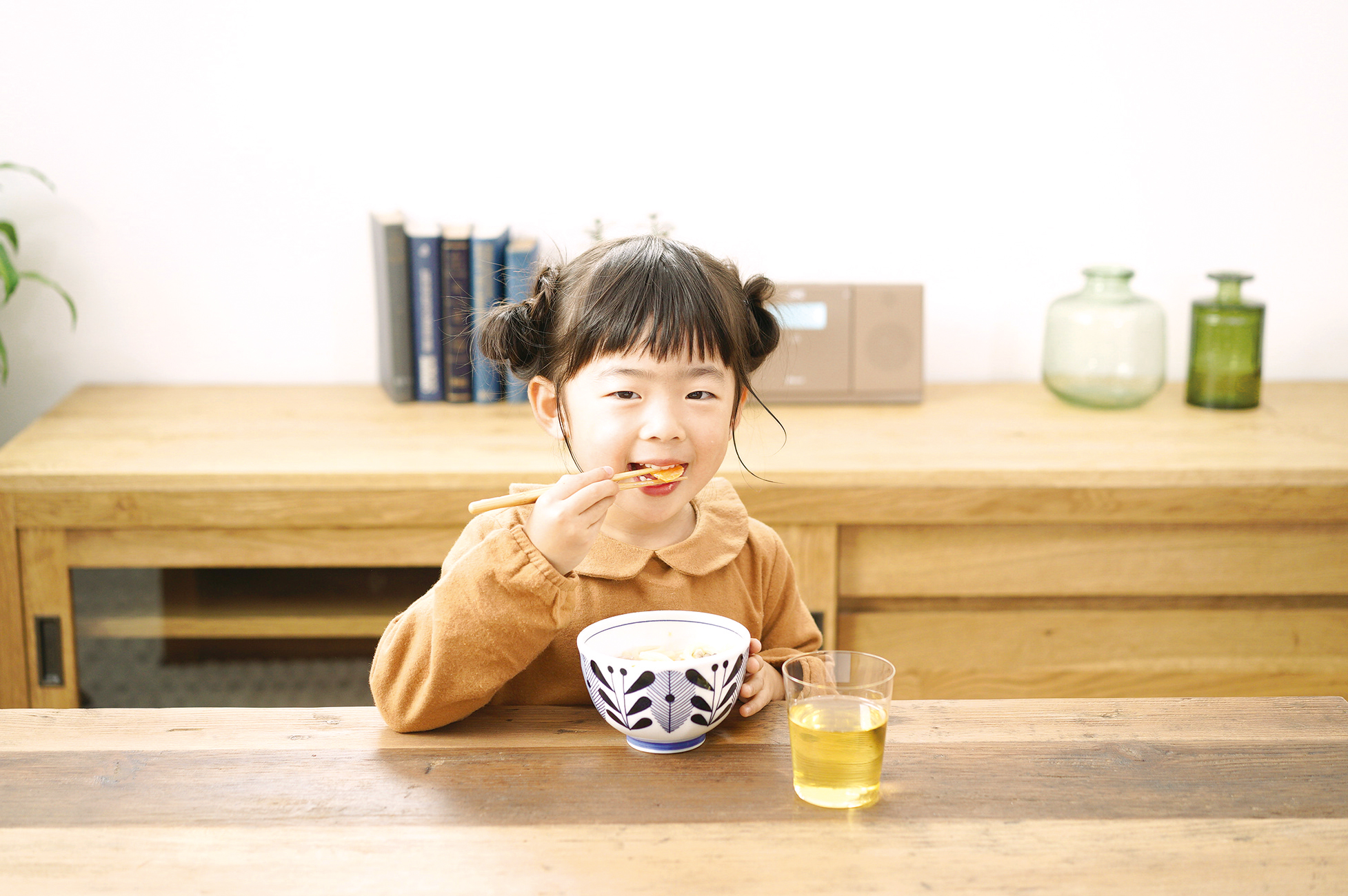 ふうふうと息を吹きかけながら、スプーンですくって食べる、