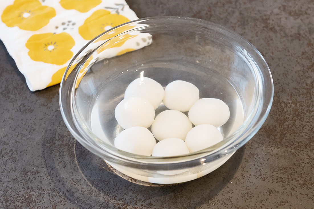 生地をこねこねしたら、手のひらでコロコロ丸めて、お湯でグツグツ茹でて、水で冷やしたら出来上がり!