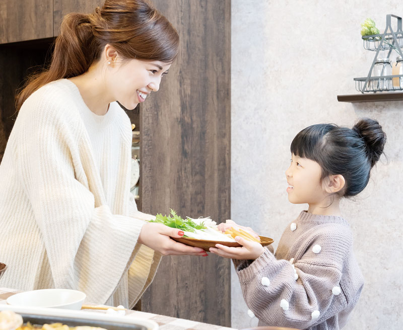 家族みんなの取り皿やおはしを運ぶのは、キッズの出番!