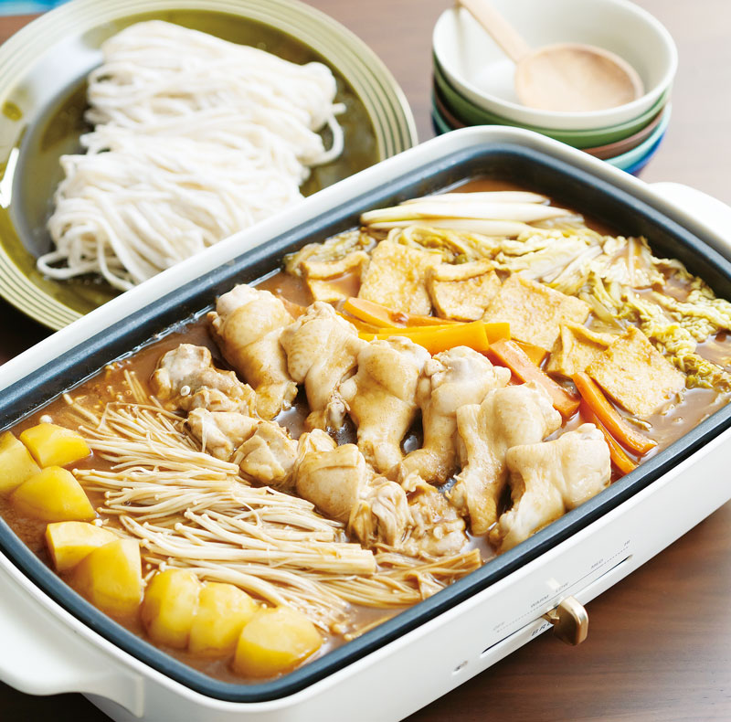 ❸ ある程度食べたら、①のうどんを加えてほぐし、卵を割り入れて軽く煮込み、カレーうどんにして食べる。