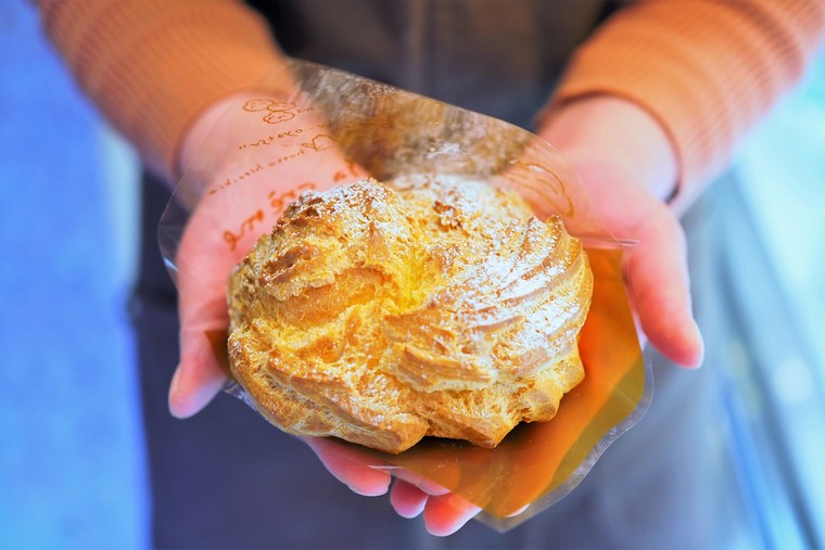 売り切れ御免!恵(めぐみ)シューは両手サイズ。しかもカスタードクリームたっぷり