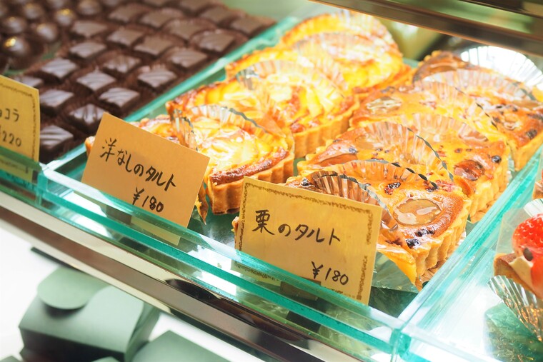 栗のタルトと洋なしのタルトは人気商品 各180円